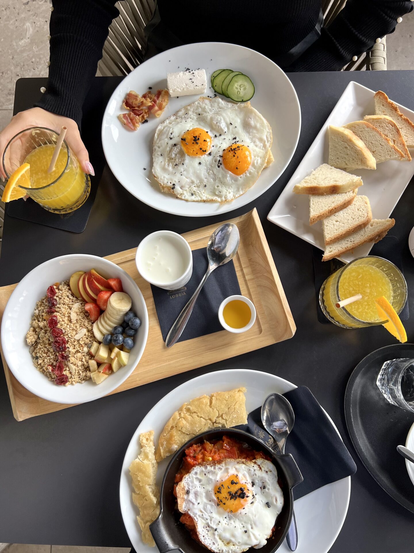 Ponujajo prefinjene obložene tramezzine, kruhke z različnimi namazi in nadevi, šakšuko, fokače, jajca na različne načine, fit zajtrk – granolo in še in še. Tudi diabetiki,vegani in obiskovalci, ki imate različne prehrambne težave ali alergije,boste v Loggi našli kaj zase. Za ljubitelje kave je na voljo širok izbor, v kasnejših urah je odlično poskrbljeno tudi za ljubitelje vin ali različnih aperitivov.