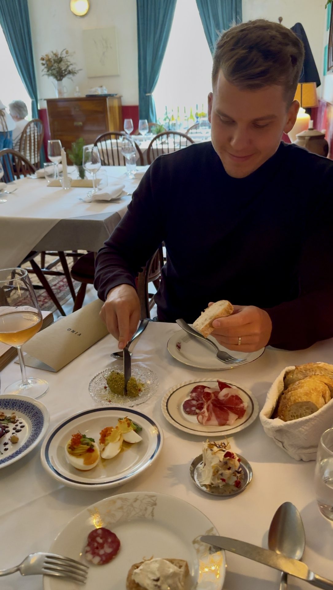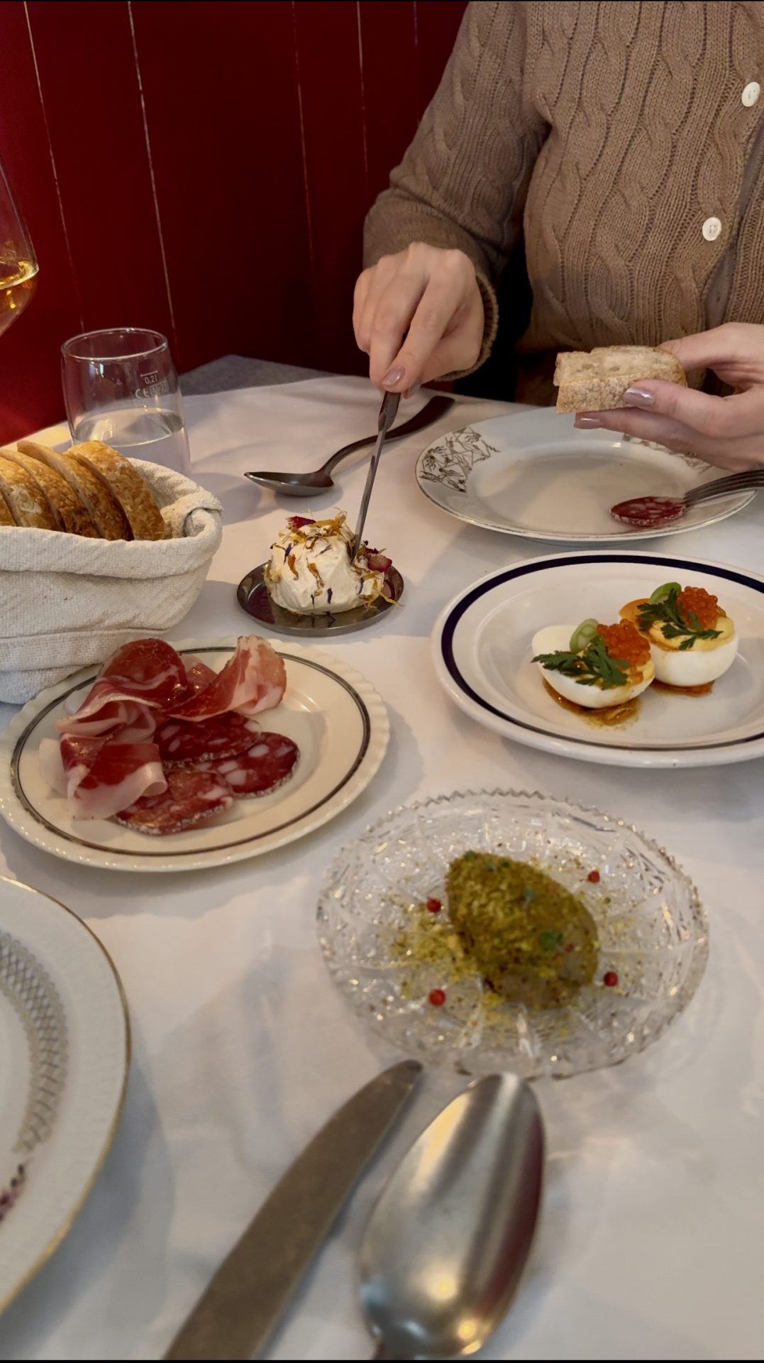 Jajca s postrvjo in ikrami ter domača piščančja pašteta, ki je bila resnično kremasta in bogata. Da o kombinaciji kozje skute in rdeče pese sploh ne govoriva – prava igra tekstur in sladko-slanih not.