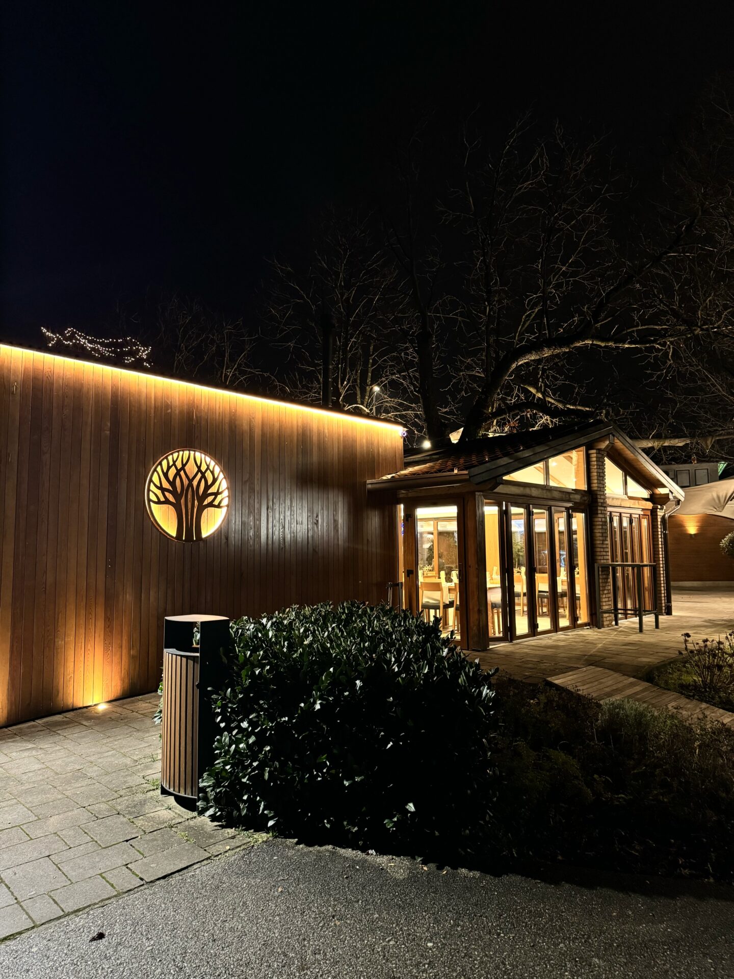 Na zunanji terasi lahko poleti uživate v senci pod orjaškimi kostanji.