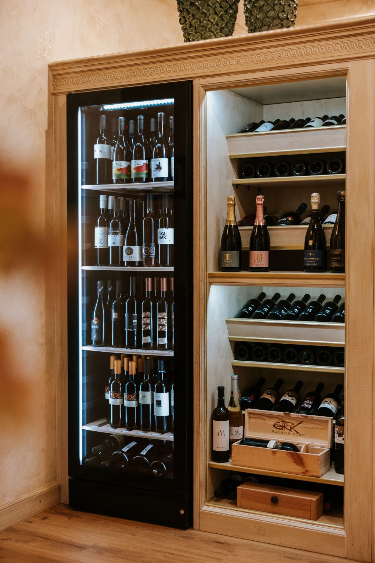 Vinsko ponudbo dopolnjujejo skrbno izbrana vina, predvsem iz lokalnega okolja, ki jedi čudovito zaokrožijo.