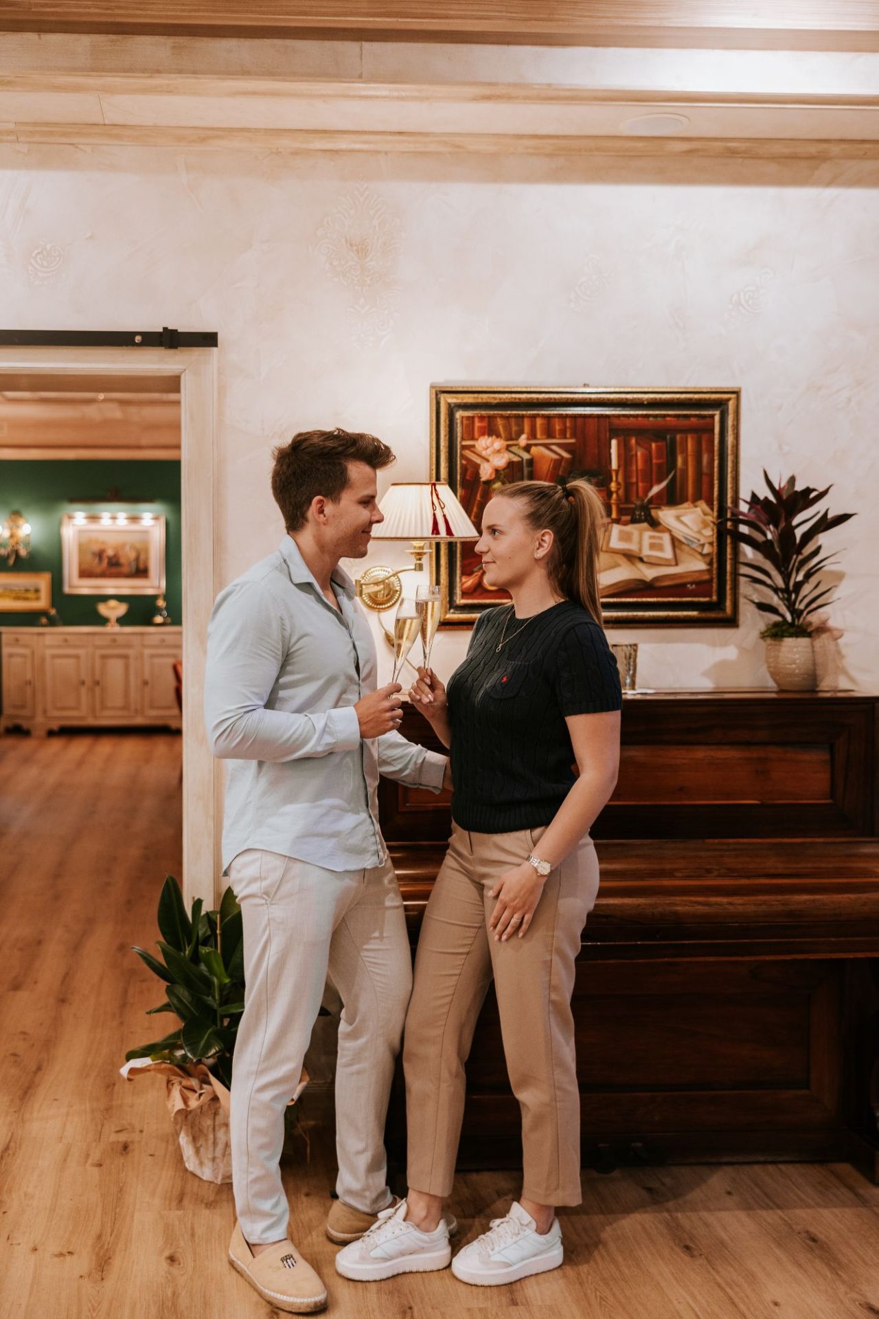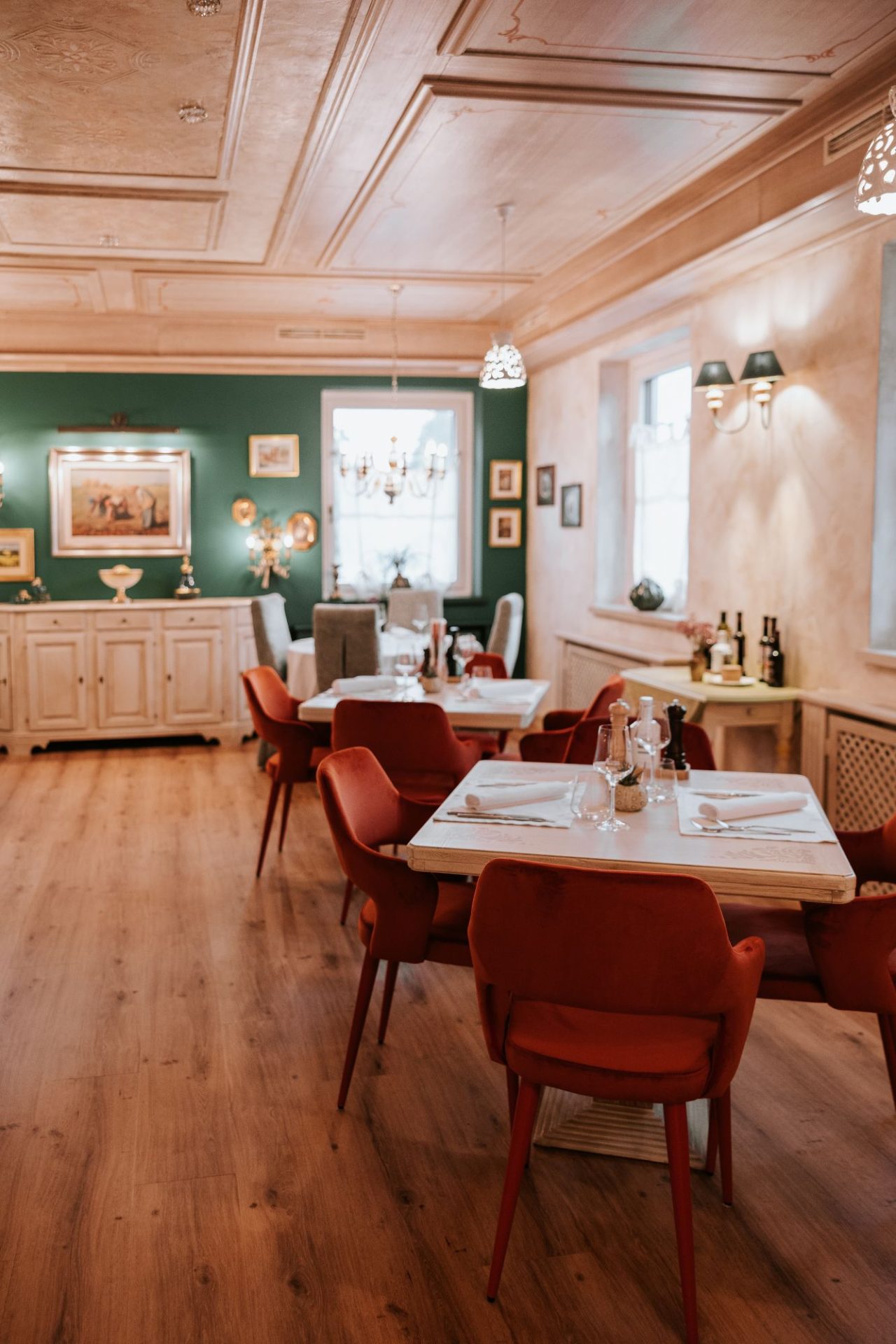 Ambient je topel, prenovljen z občutkom, premišljeno zasnovan za sproščene obede v dvoje ali večje družbe. Zunanja terasa, obdana z zelenjem in trto, je prava poletna oaza – nama jo je tokrat sicer zagodlo vreme, a razlog več, da se še vrneva.