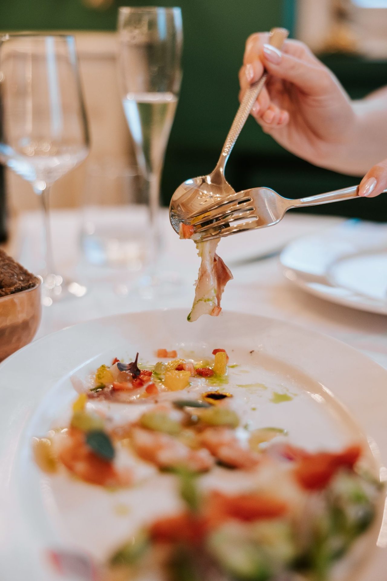 Na krožnikih vas čakajo izbrani morski okusi – od surovih hladnih predjedi, izvrstnih testenin, do popolno pripravljenih glavnih jedi. Sveže sestavine, natančnost priprave in lepota prezentacije vas popeljejo na pravo kulinarično potovanje.
